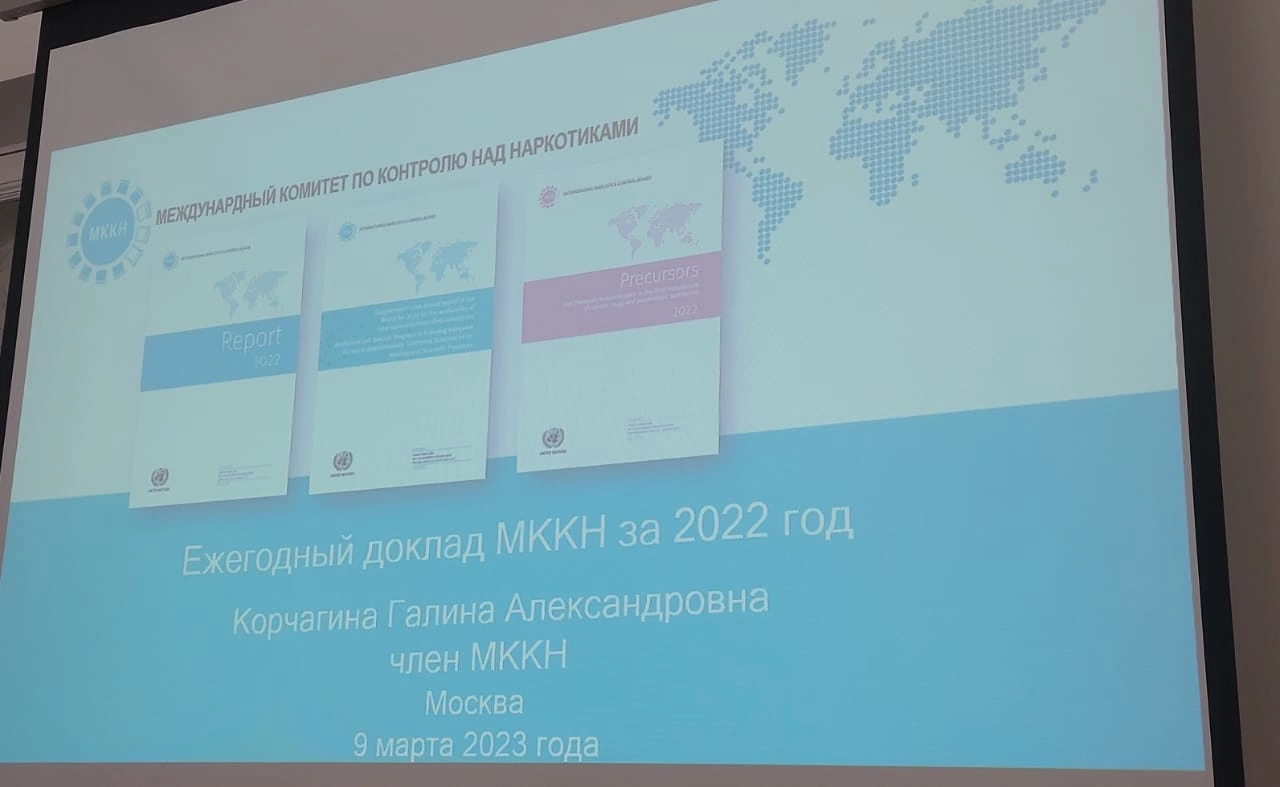 9 марта 2023 года в г. Москве в Представительстве ООН в Российской Федерации состоялась презентация ежегодного доклада Международного комитета по контролю над наркотиками ООН. С презентацией доклада выступила член комитета, заместитель директора по науке ННЦ наркологии – филиала ФГБУ «НМИЦ ПН им. В.П. Сербского» Минздрава России Г.А. Корчагина.